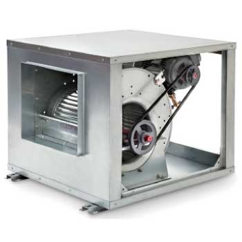 Ventilador/Extractor centrífugo BACK WARD INCLINED alabes curvados hacia atrás, de simple y doble aspiración, especial para extracción de aire con grasa y pequeñas partículas, modelos de 12″ hasta 42″ en acero al carbono e inoxidable.